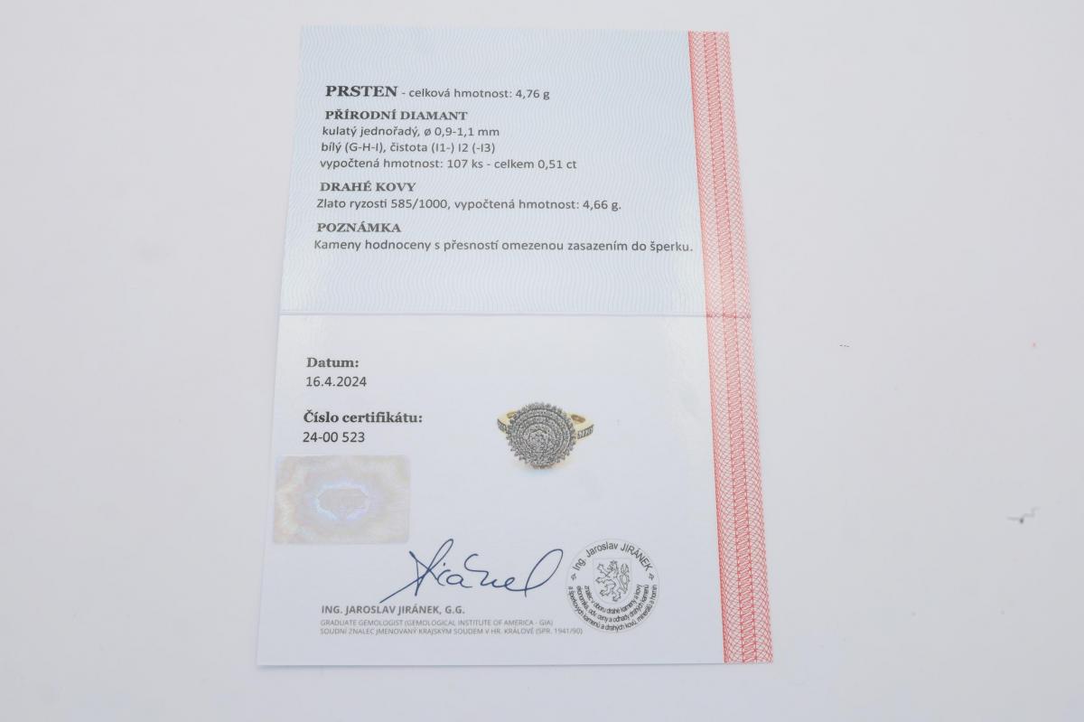 Zlatý prsten s diamanty 4,76 g 14kt